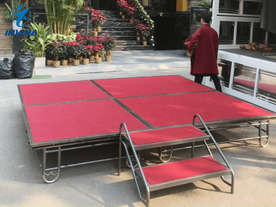 – Bề mặt thang 2 bậc có một lớp thảm đỏ, có thể thay đổi màu thảm theo yêu cầu